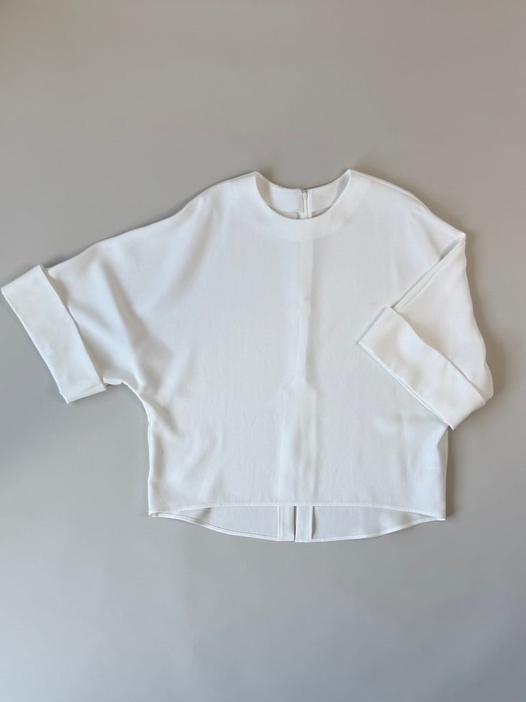 ジョーゼットのエレガント生地とトロンと滑らかな落ち感ある上品なドルマンスリーブブラウス。