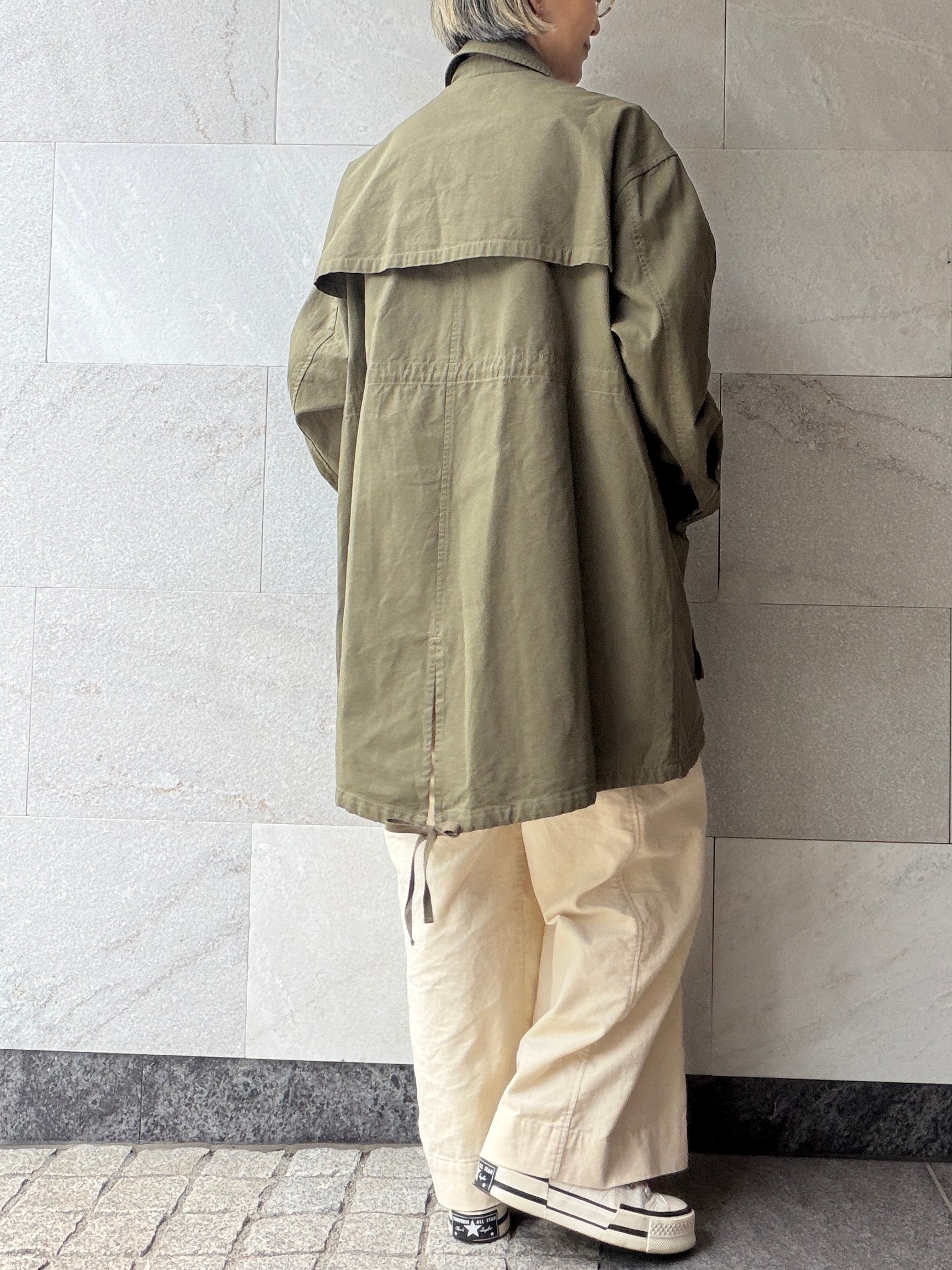 カジュアルな印象を与えるフラップ付きのパッチポケットなどのディテールに、綺麗めスラックスやスカート合わせのスタイリングは抜け感の演出が出来てお勧め。