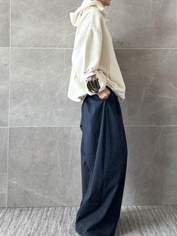 膨らみのある裏毛が立体感のあるシルエットを作り出し、全体的にゆったりとしたオーバーサイズは抜け感を与えてくれる大人スエットシリーズ。