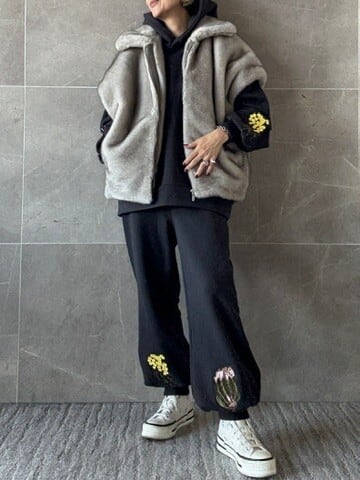 フラワー刺繍 スゥエットパンツ <Masaco Teranishi >