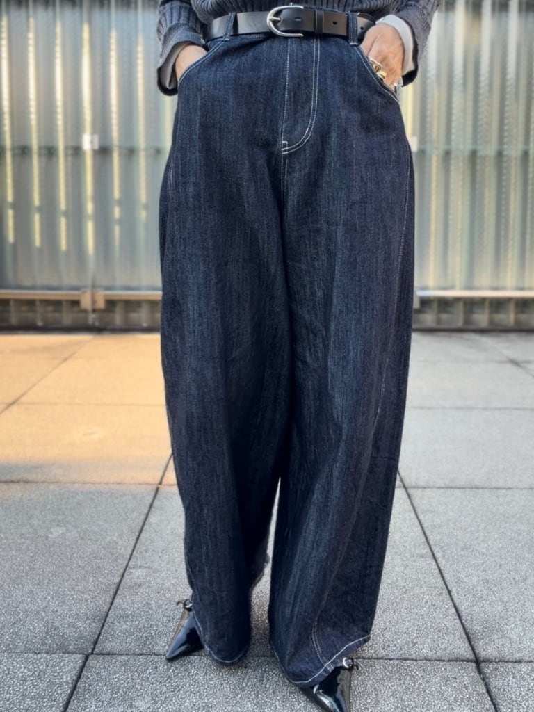 程よい厚さと、バレルレッグシルエットの前後の立体感は、落ち感のある丸みと程よいボリューム感を綺麗に表現したデザインが特徴。