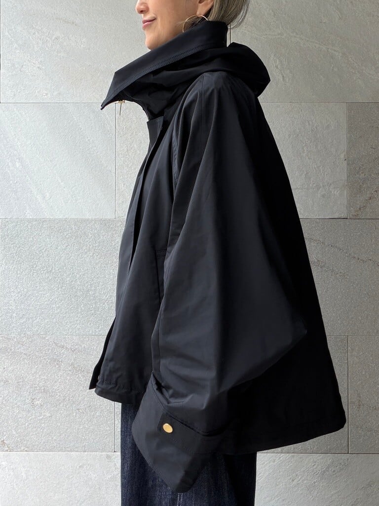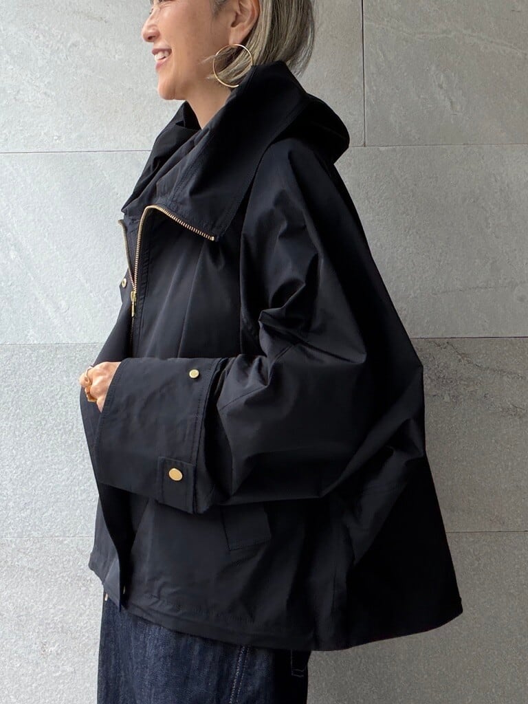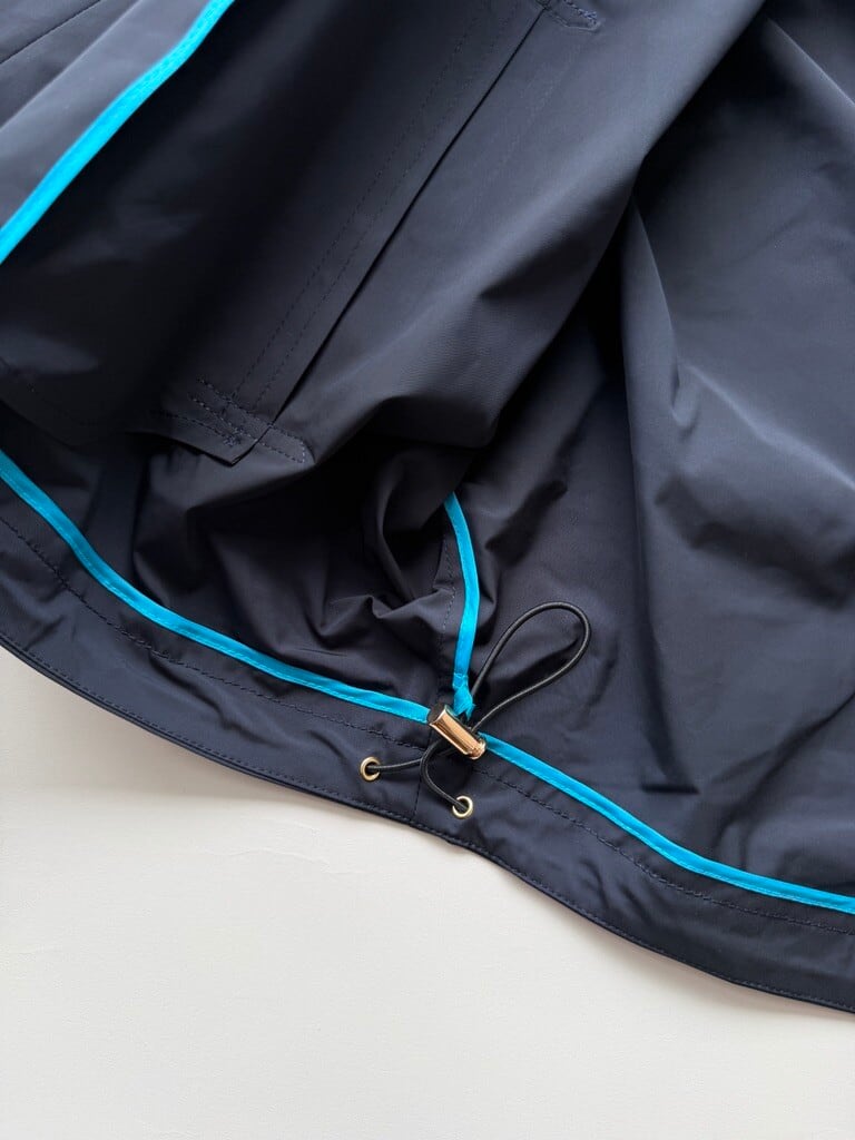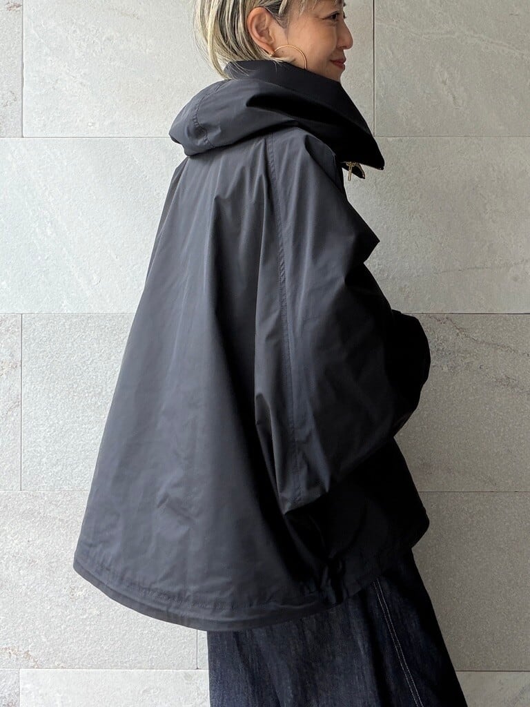 裾のドローコードでシルエットの変化を楽しめ、ボトムスとのバランスも調整可能なので