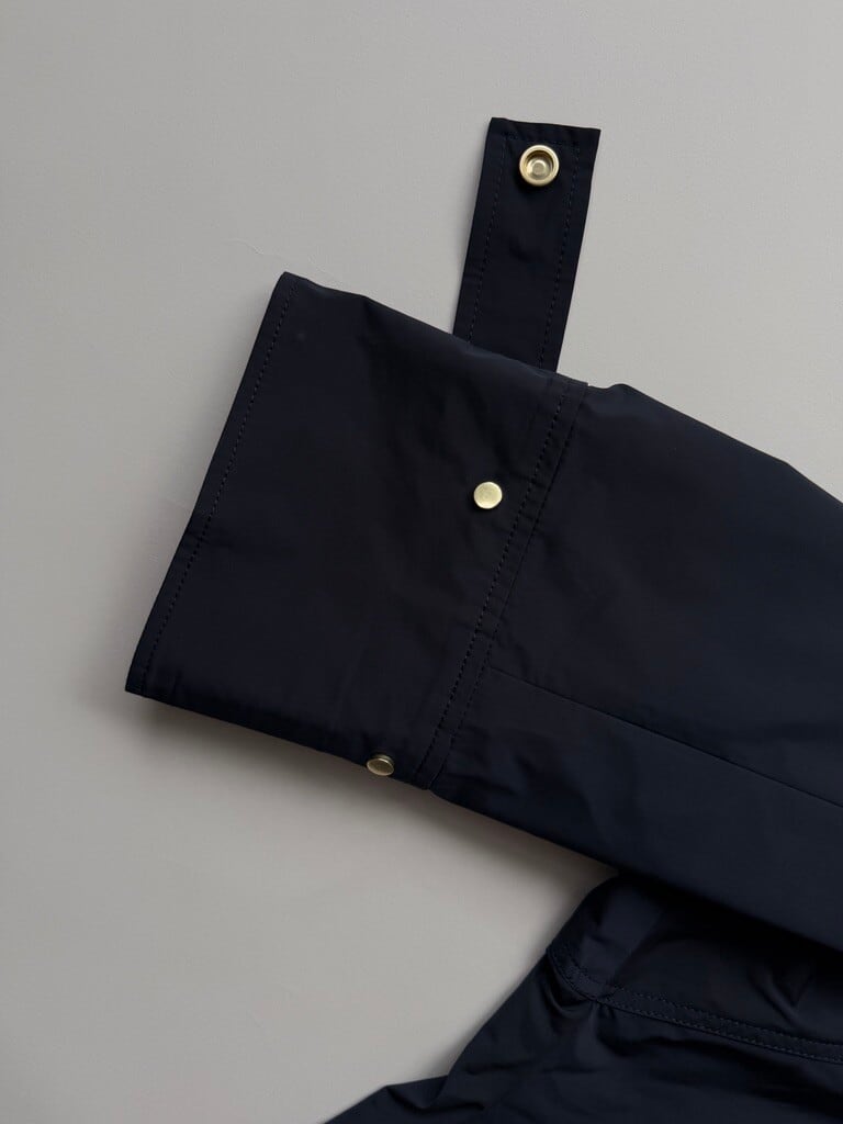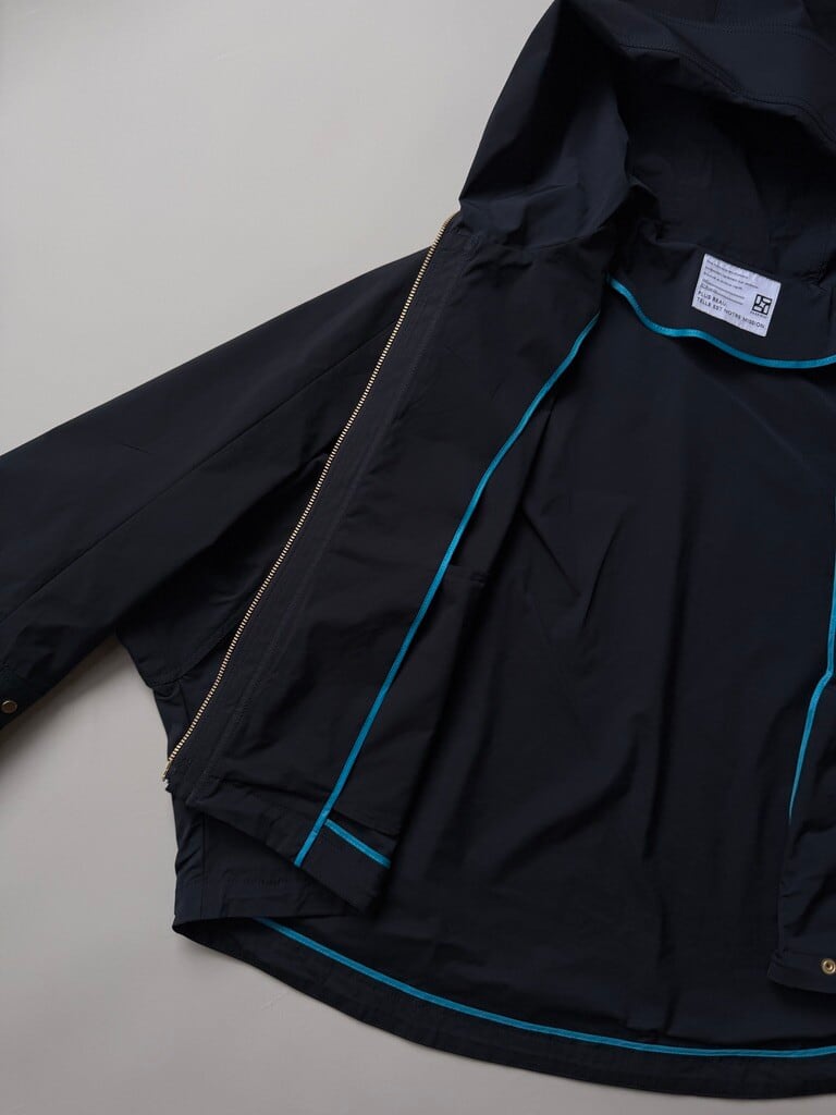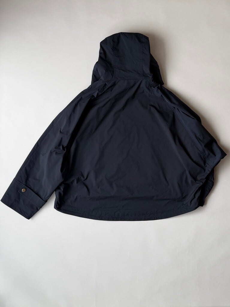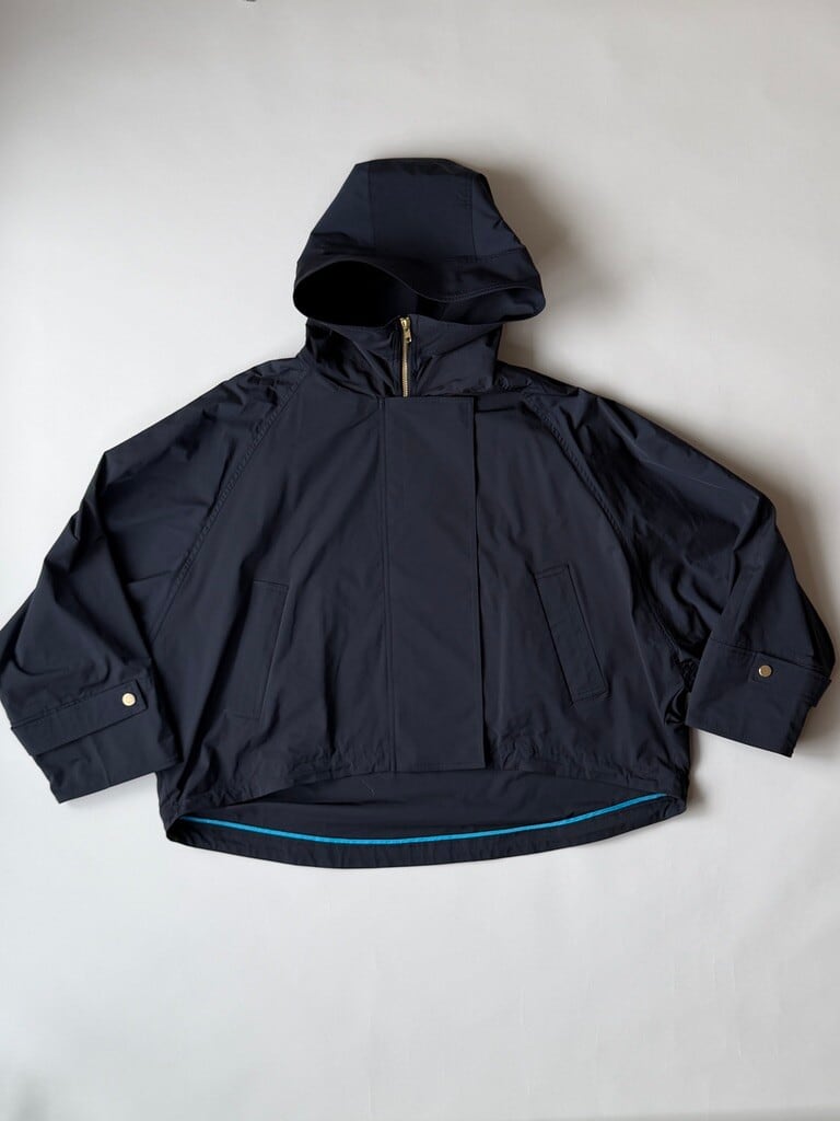裾のドローコードでシルエットの変化を楽しめ、ボトムスとのバランスも調整可能なので