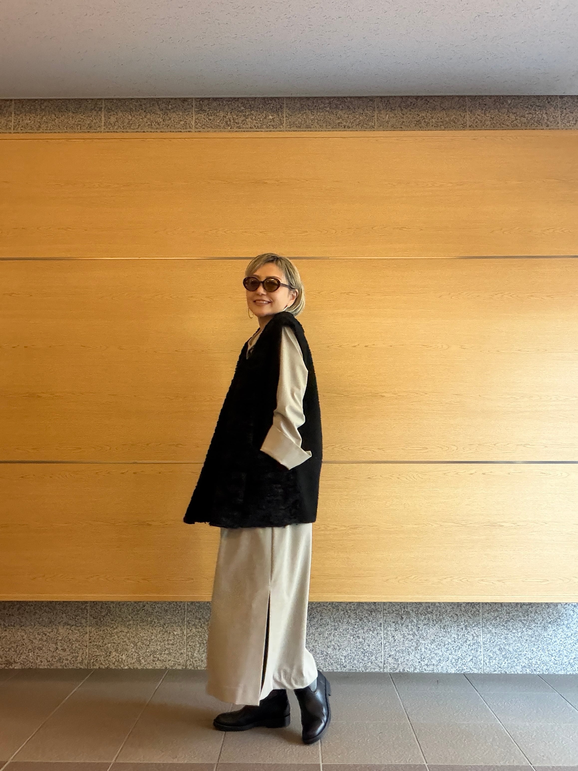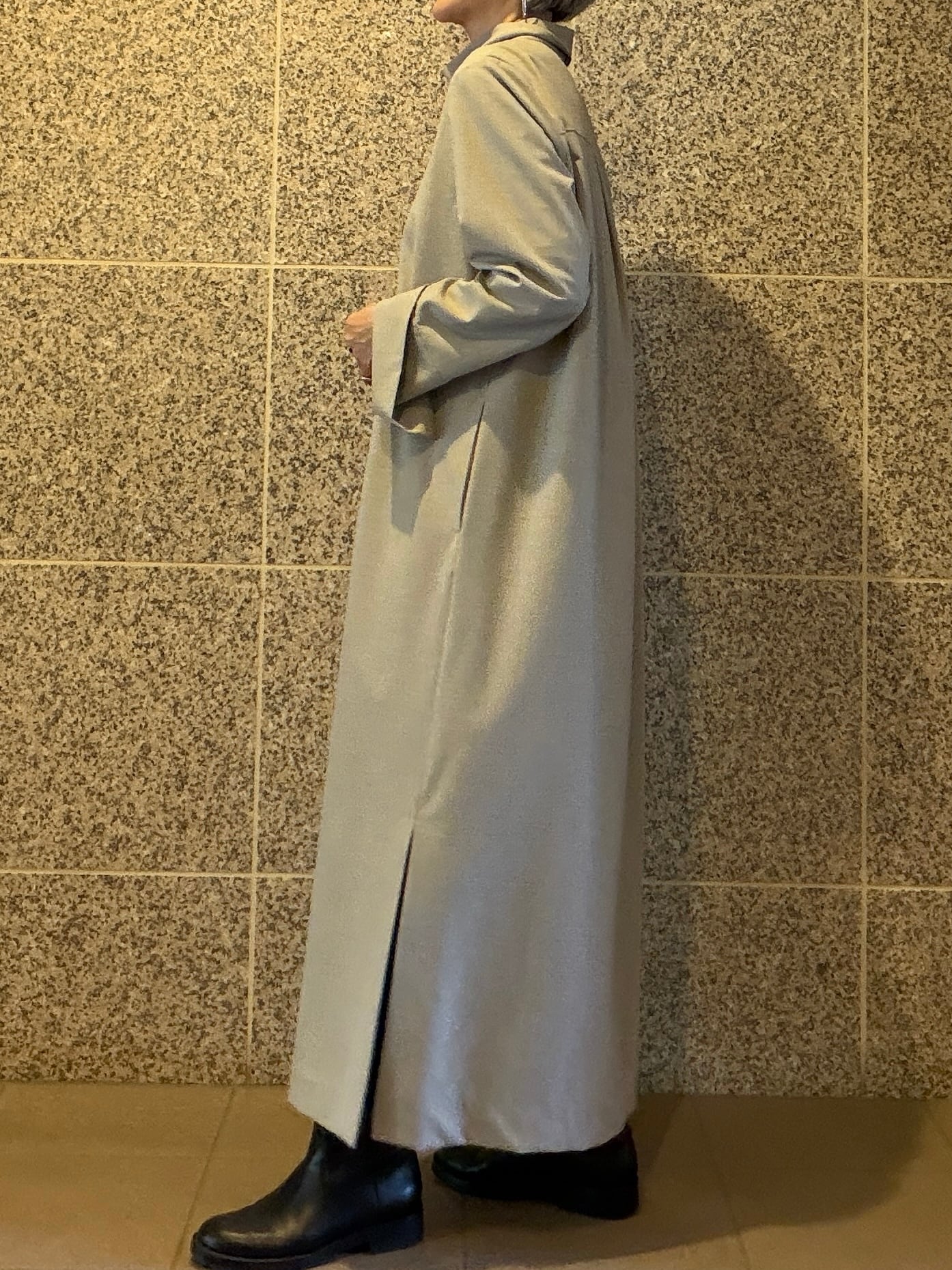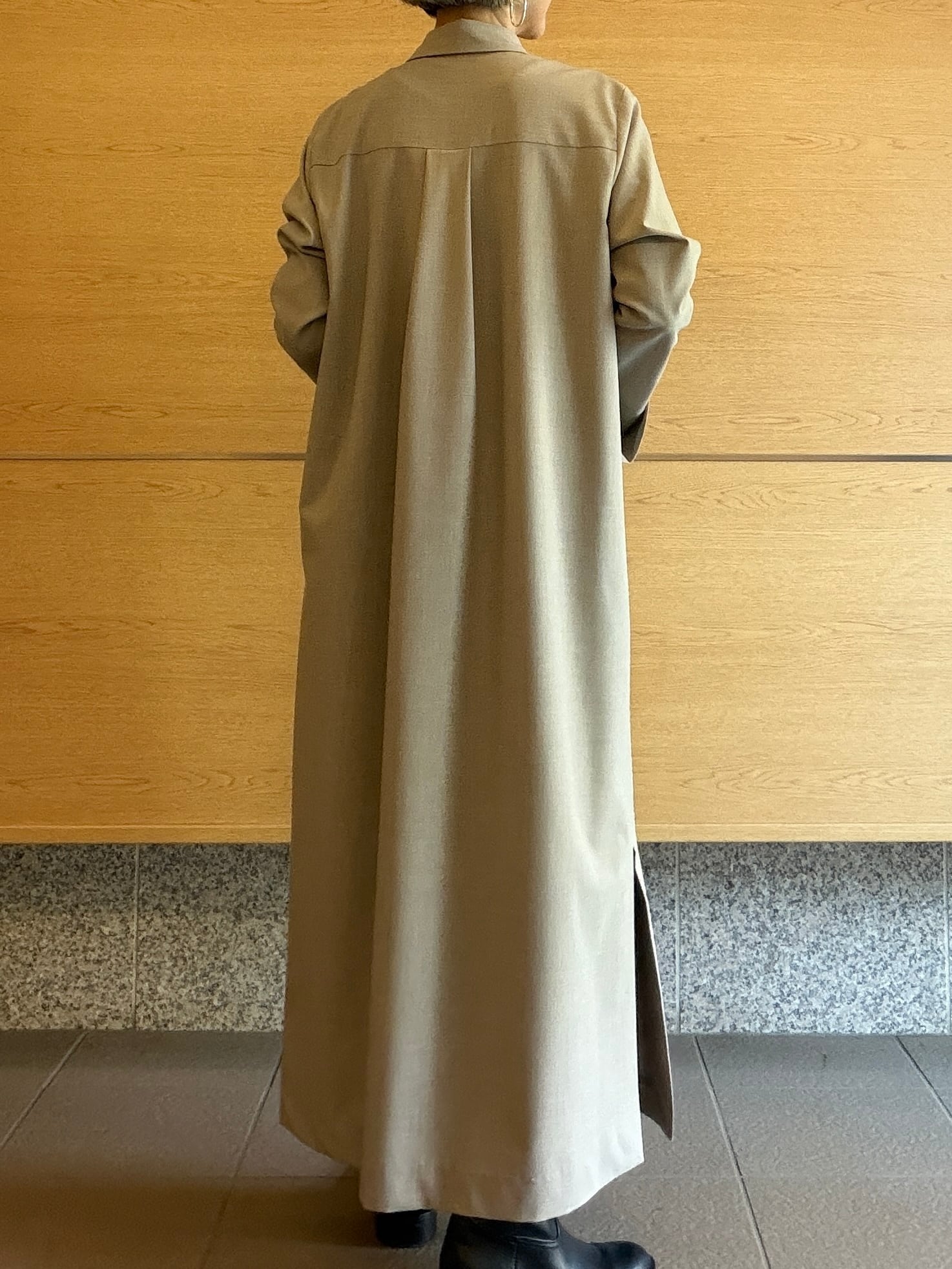 ゆとりを感じるデザインはそっとシルエットを曖昧にしてくれる嬉しい一枚。