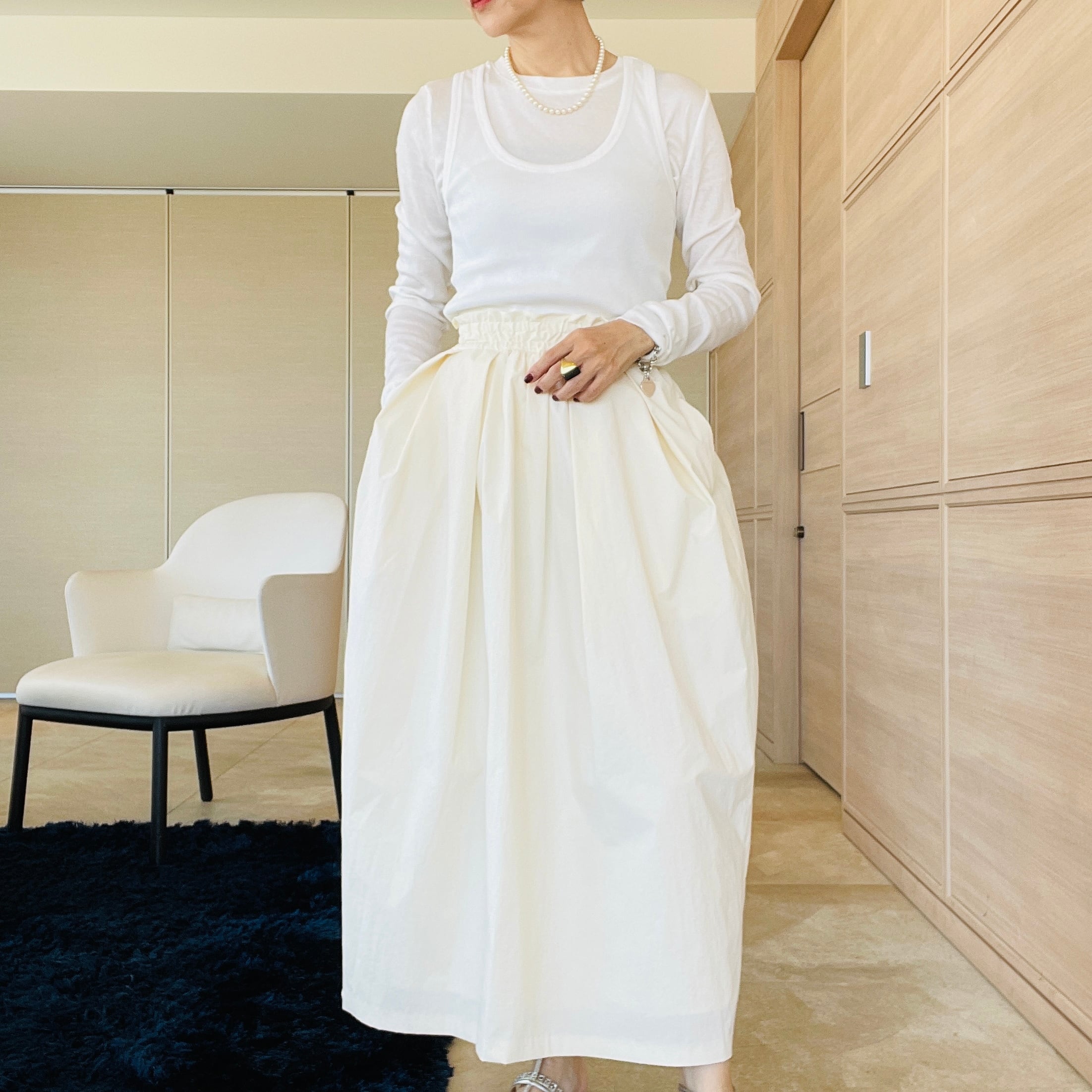 トレンドライクなレイヤーデザインを楽しめるので、セットでのコーディネートがお勧め。