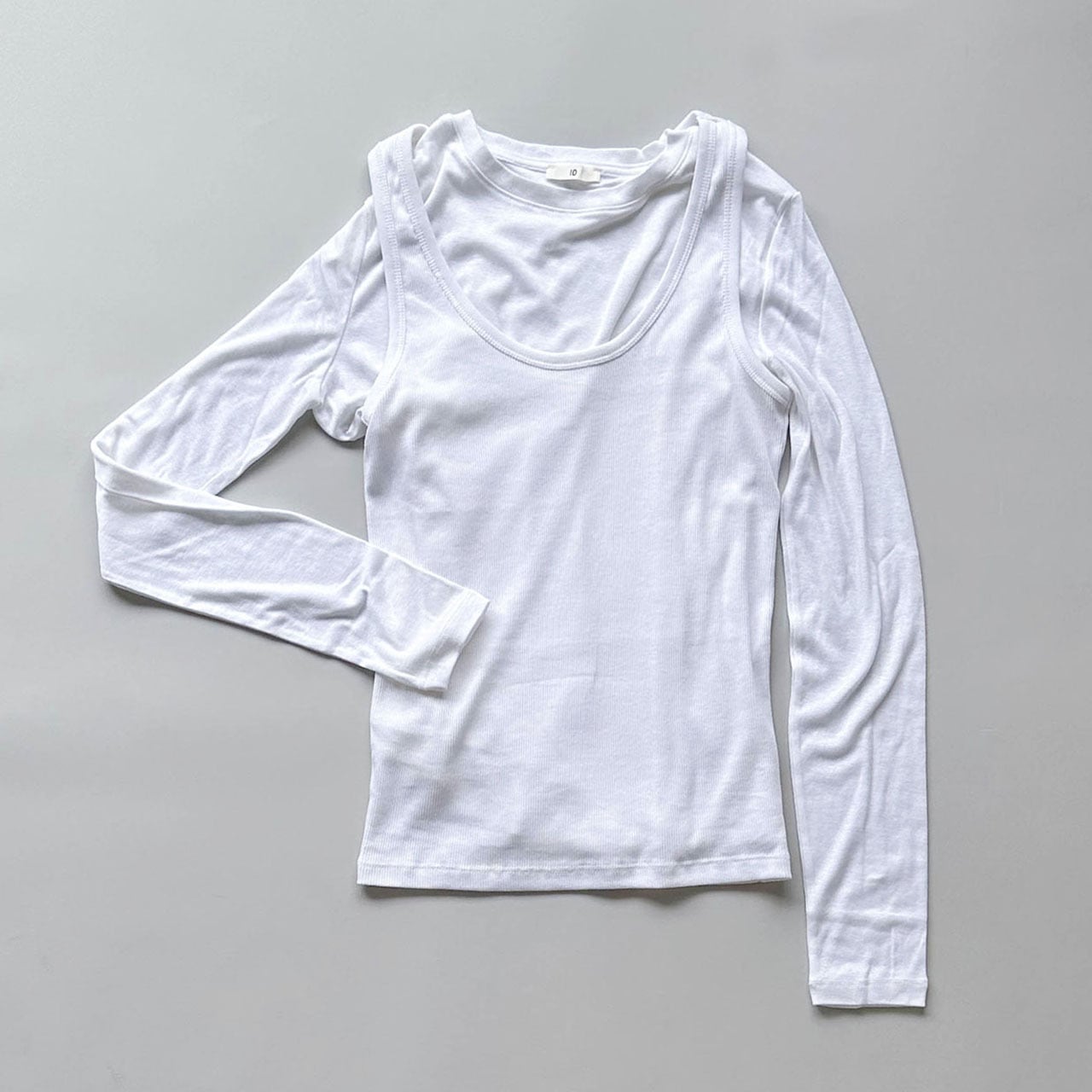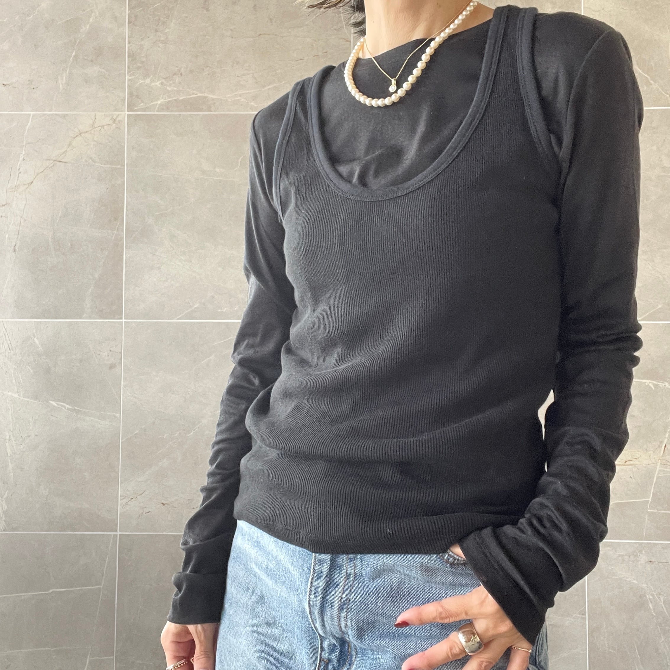 ロングスリーブとタンクトップがセットになった使い易いレイヤードトップス。