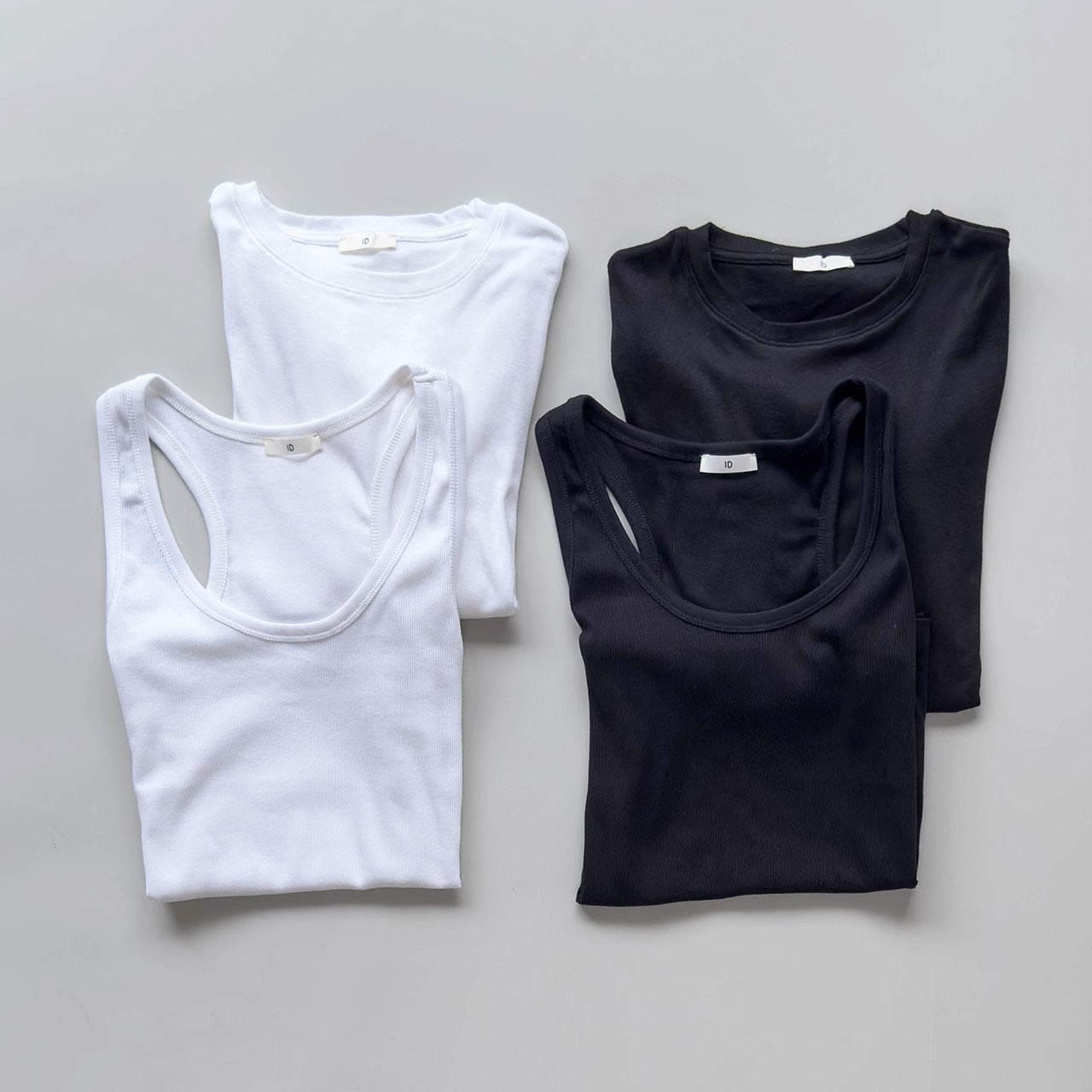 勿論、それぞれ一枚でも着用可能なのでジャケットやカーディガンなどのインナーにもお使い頂け、またロングスリーブの素材はレーヨンウールなので、秋口からはインナーとしても着用出来る着用期間が長いのも嬉しい一枚。