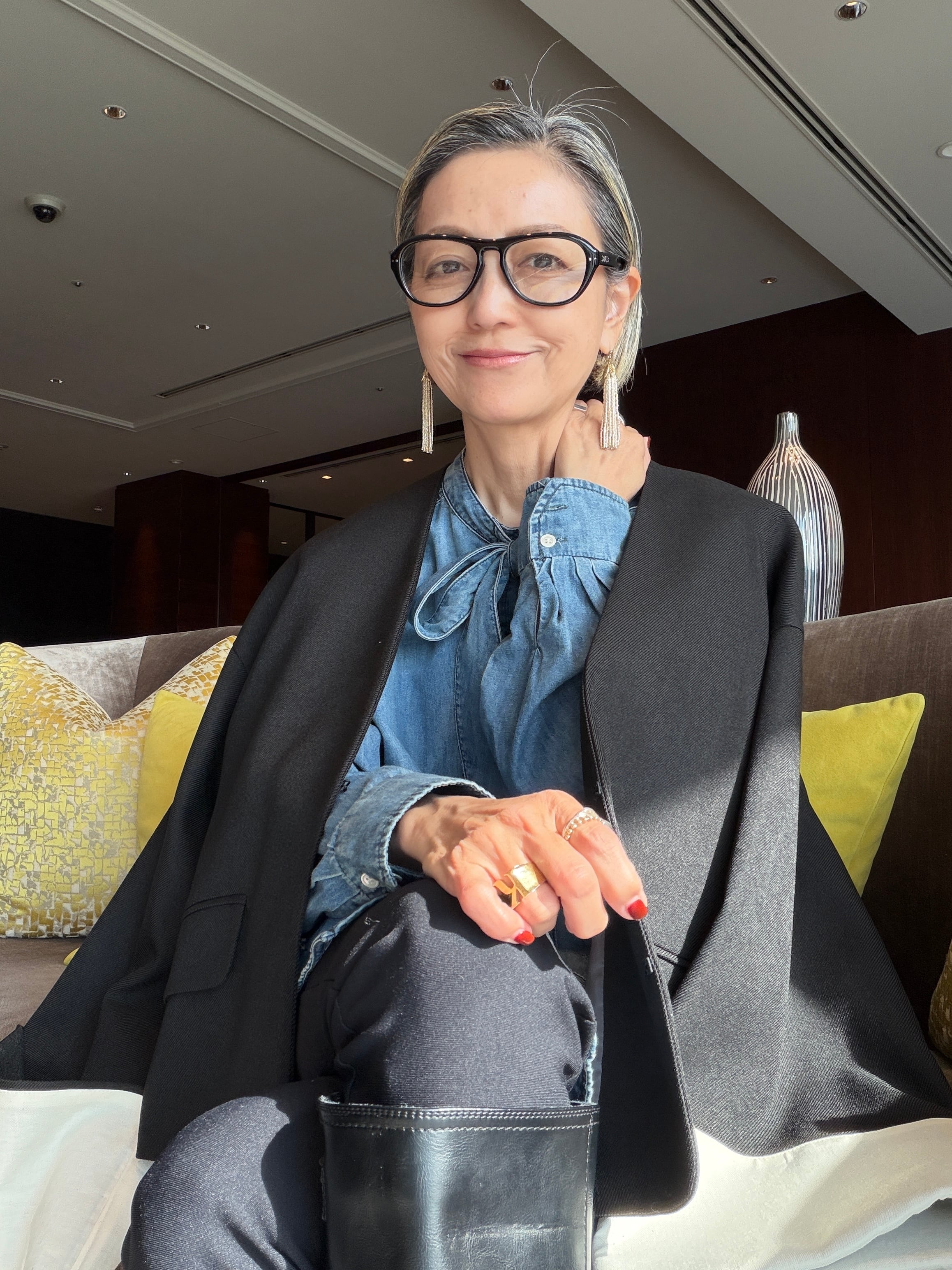 コンサバティブな雰囲気になりがちなボウタイデザインをカジュアルダウンしてくれる軽量デニム素材。